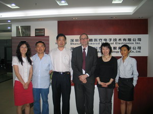 會議期間,前來公司參觀指導(dǎo)的嘉賓絡(luò)繹不絕,主要是重要客戶以及國內(nèi)外幾家磁共振生產(chǎn)商的代表。作為中國唯一一家生產(chǎn)磁共振配套的專業(yè)視頻、音頻產(chǎn)品的廠家,美德公司憑借精專的產(chǎn)品開發(fā)能力和優(yōu)質(zhì)的服務(wù),在業(yè)界享有良好的口碑,除在國內(nèi)擁有眾多的用戶外,還開始與國內(nèi)外磁共振廠商在產(chǎn)品配套和訂制特殊需求的產(chǎn)品方面有著良好的合作前景,借此博覽會在深舉辦期間,來公司參觀指導(dǎo),洽談合作。其中有西門子(中國)有限公司上海分公司的采購部總經(jīng)理Roland先生和助理謝山曉女士,西門子磁共振有限公司的技術(shù)專家們,北京協(xié)和醫(yī)院、河南省人民醫(yī)院、四川大學(xué)華西醫(yī)院的專家們、北京大學(xué)醫(yī)學(xué)物理專業(yè)的包教授、上海卡勒幅公司、浙江嘉恒公司的同道們……,他們一一聽取公司領(lǐng)導(dǎo)的公司現(xiàn)狀和未來的發(fā)展策略,參觀工作車間,考察產(chǎn)品質(zhì)量控制體系,對合作前景充滿信心。