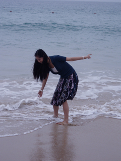 到達三亞的第一天,我們就游覽了佛教文化旅游區(qū)——南山文化旅游區(qū),108米高的海上觀音圣像巍然屹立在南海之濱,仰望圣像,清新的海風(fēng)輕輕地拂過臉龐,盡情享受著佛教文化圣地的這份獨有的清凈,耳邊只有那調(diào)皮的浪花與巖石的嬉戲聲。第二天我們又游覽的亞龍灣,我們騎著租來的自行車,在亞龍灣的公路上灑滿美德人的歡笑,亞龍灣的風(fēng)景實在是太美了,碧海、浪花、沙灘、椰林、草地……一切的一切都是那么的美好,我們不停的拍照,只想時間停留在這一刻。