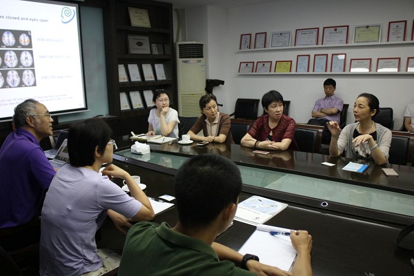 2016年6月13日上午,杭州師范大學(xué)臧玉峰教授、深圳英智醫(yī)療總經(jīng)理彭秋英、深圳安科醫(yī)療導(dǎo)航產(chǎn)品專(zhuān)家李修往等共聚美德醫(yī)療公司,探討合作方案。