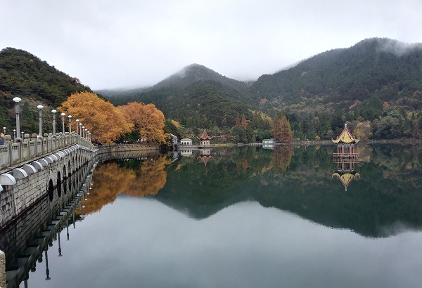 《廬山戀》電影里的男女主人公相約游泳的盧林湖,湖面平靜,深秋的早上,湖面突然升起一團(tuán)白霧,逐漸向我們逼近,又突然消散,讓人感覺神秘而仙氣十足。如琴湖是廬山區(qū)牯嶺街的一處街心公園,因湖面形如樂器小提琴,所以故名"如琴湖"。如琴湖座落西谷,峰嶺圍抱,森林蓊蔚,環(huán)境幽雅。湖心立島,島內(nèi)有許多人工飼養(yǎng)的孔雀,所以名為孔雀島,曲橋連接,上綴水榭,形成綠水青山,相映成趣,臨立島上縱覽四周妙處橫生。