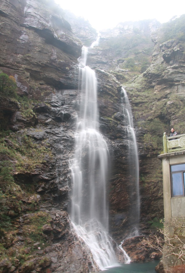 “飛泉三疊下,龍走碧潭淵;一徑飄寒雨,千林散綠煙。”這首詩描寫的正是三疊泉,三疊泉位于五老峰下,飛瀑分三疊飛瀉而下,落差共155米,極為壯觀,懾人魂魄。站在觀瀑亭抬頭仰望,三疊泉拋珠濺玉,宛如白鷺千片,上下爭飛;又如百副冰綃,抖騰長空,萬斛明珠,九天飛灑。上疊如飄雪拖練,中疊如碎玉摧冰,下疊如玉龍走潭。