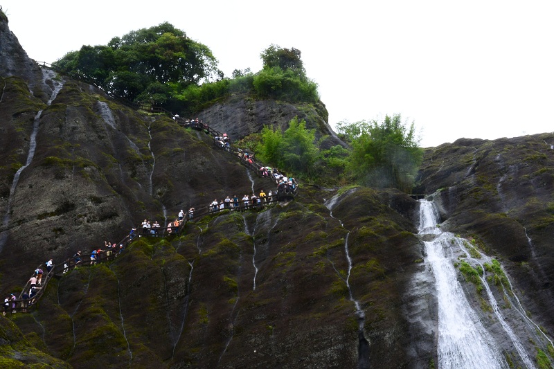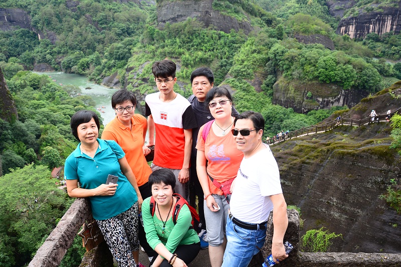 清晨,我們進(jìn)入武夷山景區(qū),登上天游峰,感受它的險(xiǎn)峻俏麗,厚重與質(zhì)樸。下午,我們乘著竹筏,在九曲溪緩緩漂流,小雨飄到臉上,甚是輕柔涼爽。一睹大王峰、玉女峰、虎嘯巖的風(fēng)采,靜靜地享受那份愜意與悠閑。我們又來(lái)到一線(xiàn)天,感受大自然鬼斧神工造化,在夾縫中攀巖,挑戰(zhàn)自我。晚上,我們欣賞了大型實(shí)景演出《印象大紅袍》,在一場(chǎng)華麗的演出中深深地領(lǐng)略閩西茶文化,在研習(xí)茶文化的同時(shí)思考人生,啟迪自我。次日,我們又觀(guān)看了大紅袍茶樹(shù)和水簾洞等景點(diǎn)。